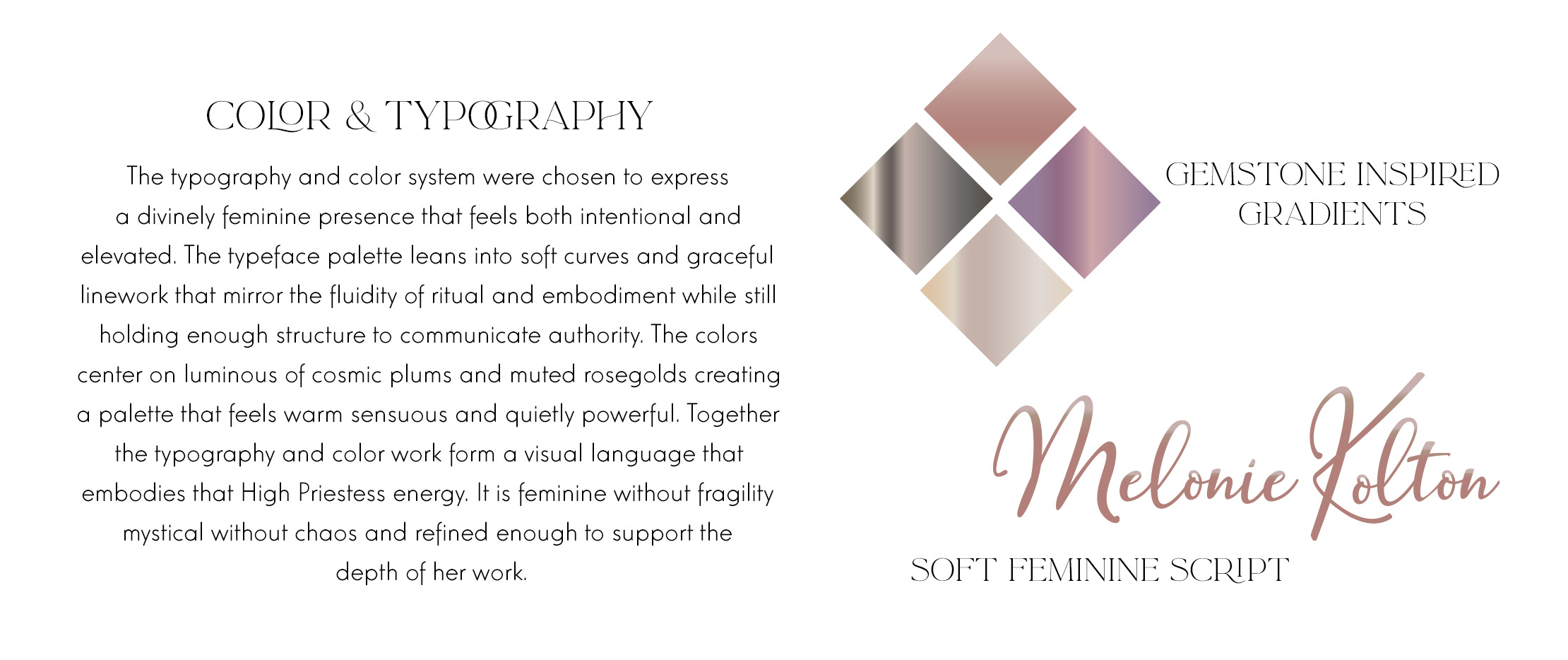 This Aquarian Creative feature highlights the complete brand development journey for Melonie Kolton and showcases the signature approach of soulful brand design. The spotlight covers the transformation from scattered ideas into a clear brand identity with cohesive visuals, intentional color stories, and a message that feels aligned with Melonie’s voice as a practitioner and guide. The page illustrates how Aquarian Creative blends artistic intuition with strategy to help clients uncover their essence and express it through elevated branding. It reflects how thoughtful brand foundations become the anchor for websites, logos, photography direction, and the emotional experience a client creates for their audience.